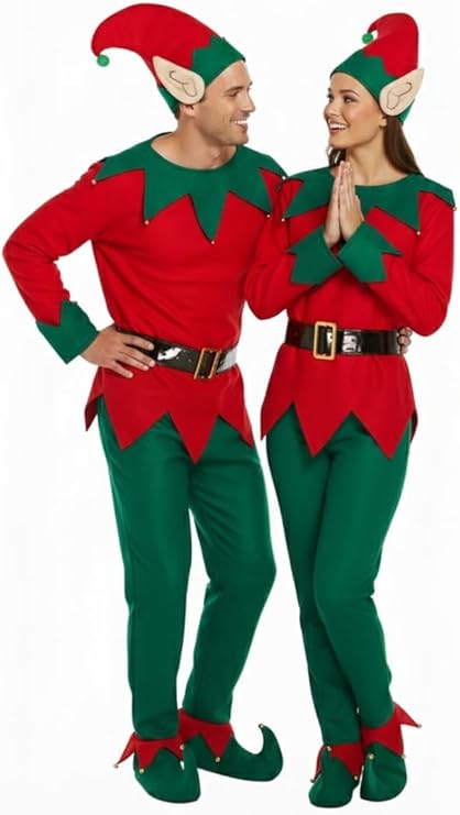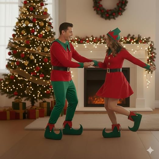 labreeze Pack of 2 Christmas Elf Costumes for Adults – One Size Couples Fancy Dress Set
