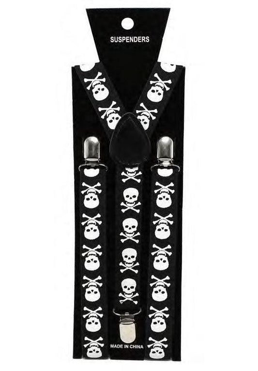 Skeleton Braces Adjustable Halloween Skull Printed Unisex Elastic Clip on Suspenders