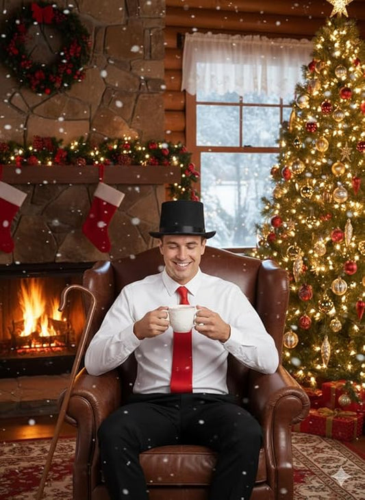 Labreeze Men's Dickens Caroler Costume Kit – Victorian Christmas Accessories with Black Top Hat, Red Tie & Shepherd’s Crook