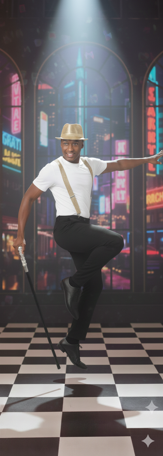 labreeze Black Sequin Gangster Hat with Matching Braces and Gold Pimp Stick – Adult Christmas Fancy Dress Accessory Set