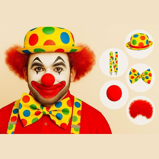 labreeze Deluxe Clown Costume Accessories Set – 6-Piece Polka Dot Fancy Dress Kit