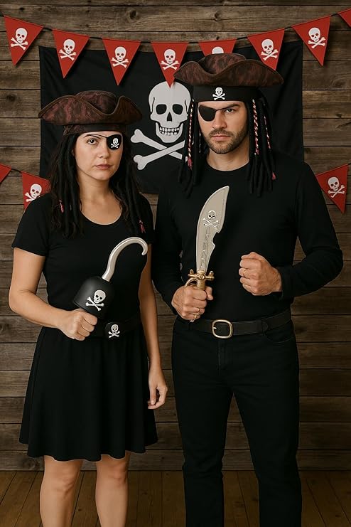 labreeze Adult’s Deluxe Brown Pirate Hat with Hair & 5pc Pirate Fancy Dress Accessories Pack