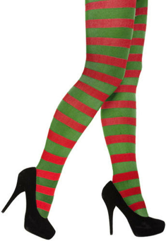 WOMEN ELF SANTAS MISS SANTA STRIPED TIGHTS CHRISTMAS FANCY DRESS