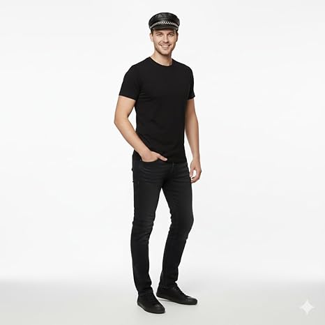 labreeze Men’s Black Biker Hat – Faux Leather Police Style Cap – Adult Fancy Dress Costume Accessory