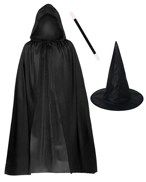 labreeze Lincoln Style Black Velour Hat with Santa Beard & Gold Hand-Held Bell – Women’s Christmas Fancy Dress Accessory Set