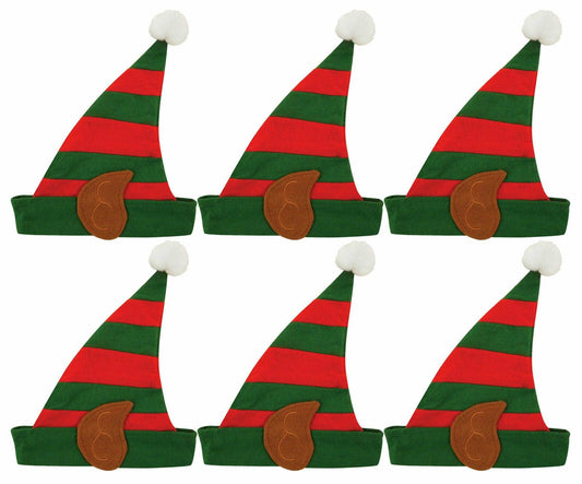 Adults Elf Hat Pixie Ears Red Green Christmas Xmas Party Fancy Dress Pack of 6