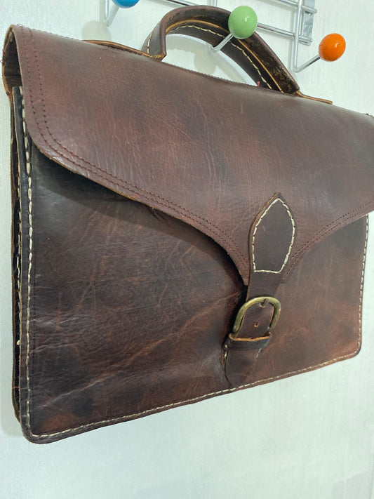 Vintage rusted handmade real leather handbag laptop Moroccan bag