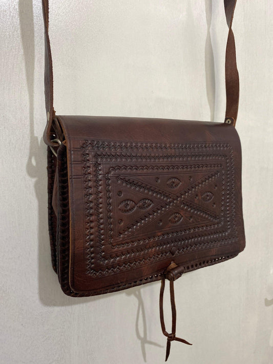 Vintage handmade real leather shoulder handbag Moroccan side passenger bag