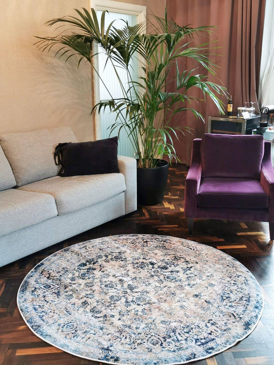 Round rug denizli (BLUE) for fancy living room