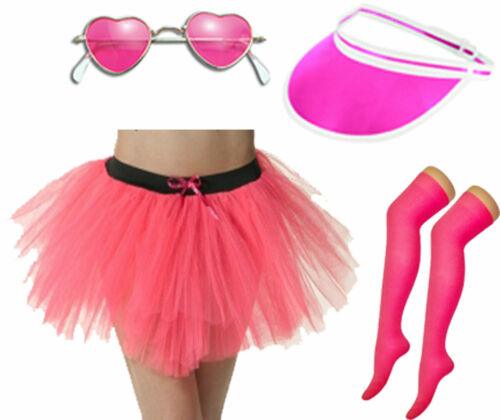 Pink Heart Shaped Glasses Tutu Skirt Socks Sun Visor 1960’s Party Fancy Dress