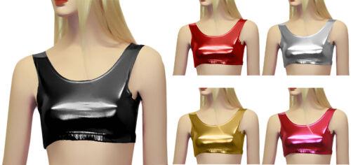 New Ladies Women Shiny Metallic Dance Crop Top Vest Top 5 Colours