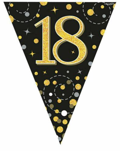 Sparkling Fizz Happy Birthday Holographic Bunting Black Gold Party Decoration