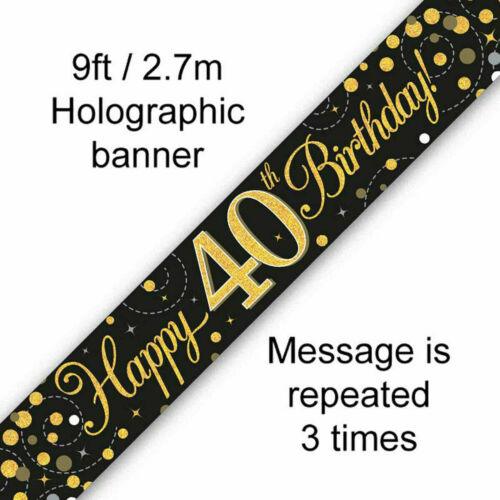 Sparkling Fizz Banner Black Gold Happy Birthday Holographic Party Decorations