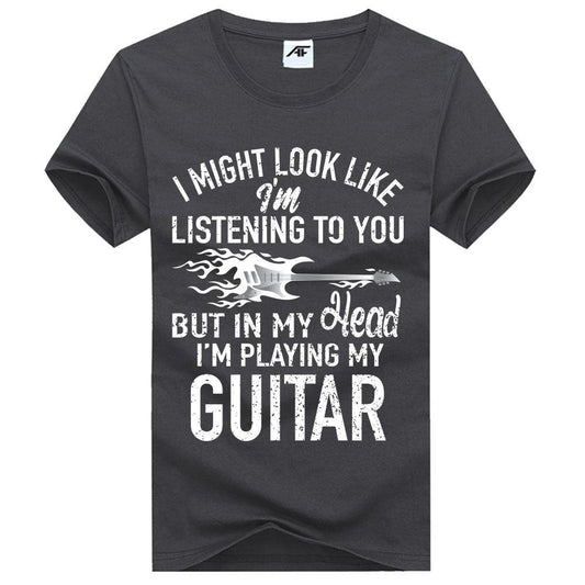 I Might Look Like I'm Listening to You I M Playing Guitar Printed Ladies Men’s Unisex T-Shirt