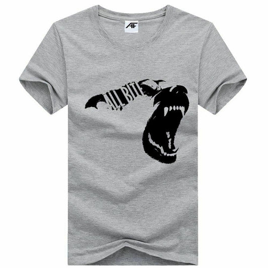Ladies Men’s Cotton All Bite Dog Attacking Silhouette Printed Graphic T-Shirt Ad