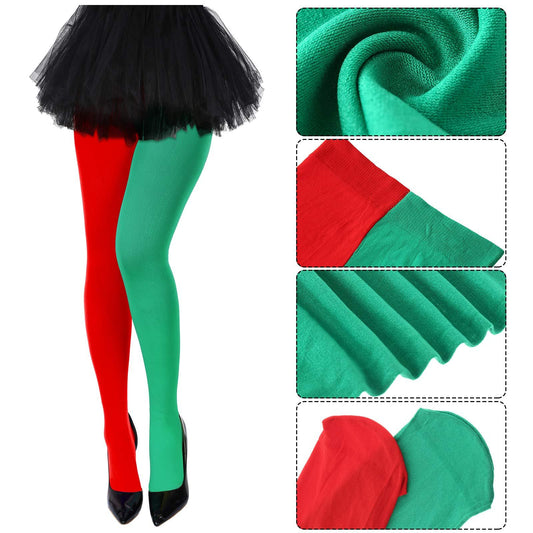 Ladies Christmas Santa Helper Elf Red Green Tights Xmas Party Fancy Dress