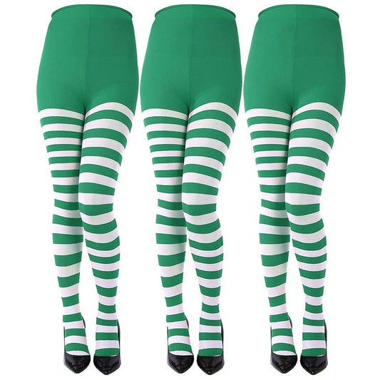 Ladies Elf Santa’s Helper Miss Santa Stripy Tights Christmas Xmas Novelty Party Fancy Dress