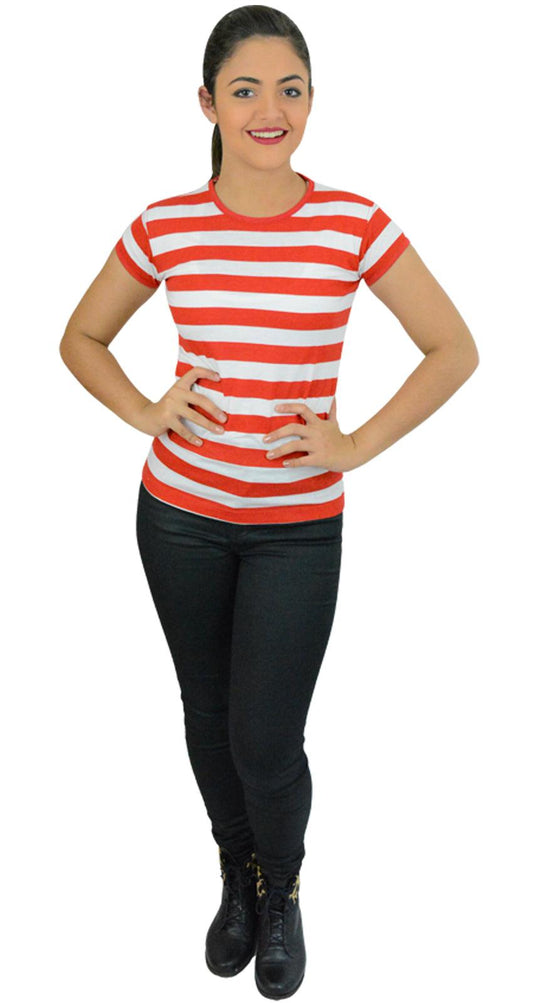 Ladies Geek Red & White Striped T-shirt Women’s Regular Tops Hen Night Tops