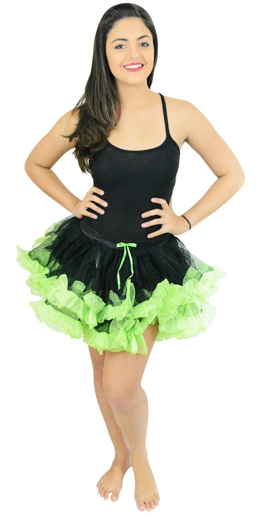 Ladies Girls 2 Layers Black Green Short Ruffle TuTu Skirt Hen Night Party Costume