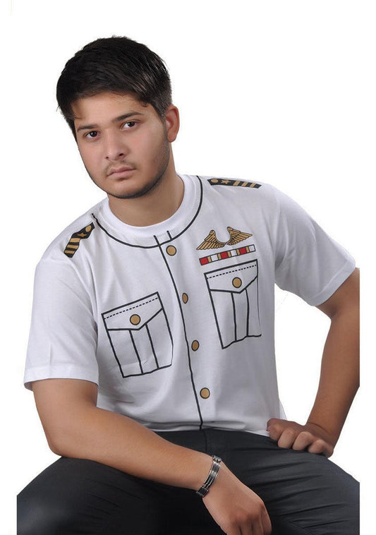 Adults Unisex Navy Captain Printed T-Shirt Short Sleeve Naval Officer Fancy Dress Top