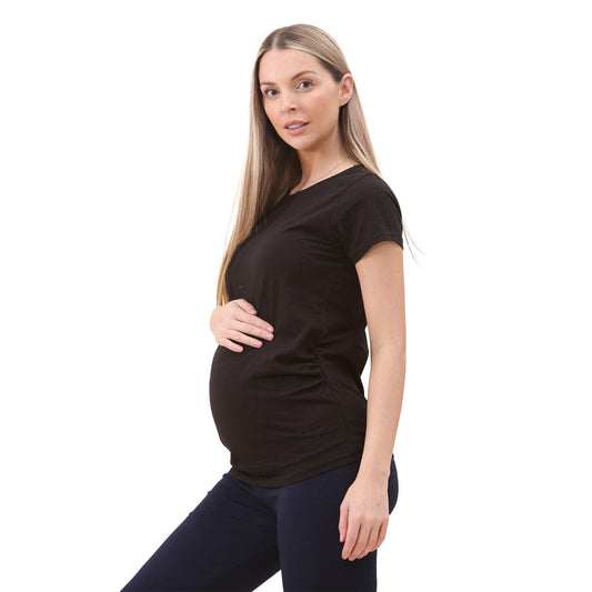 Ladies Black Maternity Top Round Neck Short Sleeve Plain Cotton Pregnancy T-Shirt Black Maternity Top Cotton Pregnancy T-Shirt