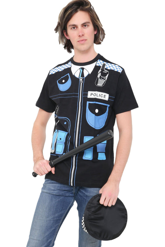 Men’s Police Printed T-shirt Blue Black Women Adults Police Cop Fancy Dress Top
