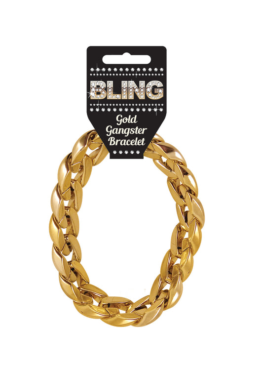 White Al Capone Gangster Hat with Black Band & Gold Gangster Bracelet 1920’s Pimp Fancy Dress Set