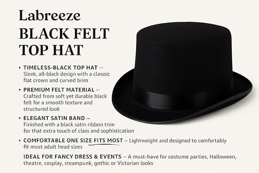 Adults Posh Rich Victorian Gentleman Black Top Hat – Perfect for Costume Parties, Halloween, Themed Events, and Historical Reenactments