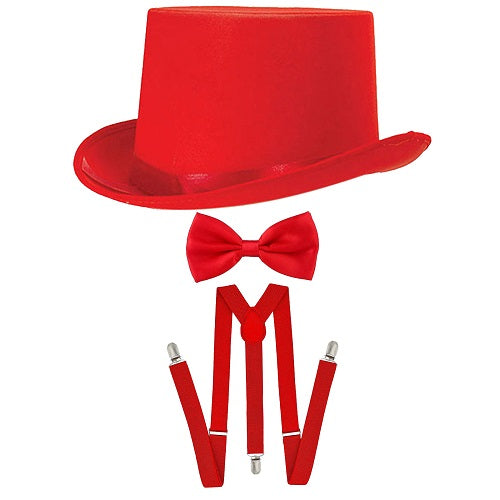 Sophisticated Red Satin Top Hat, Tie, and Braces Set Elevate Your Ensemble