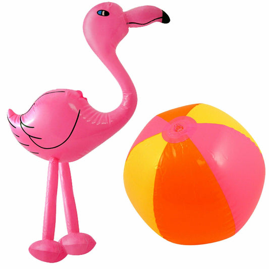 Inflatable Flamingo with Beach Ball 50 cm Hawaiian Tropical Beach Party Prop Set