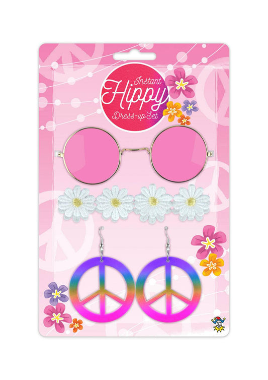 Adults Hippie Flower Headband Earrings Glasses Set Girls 70s Party Accessories