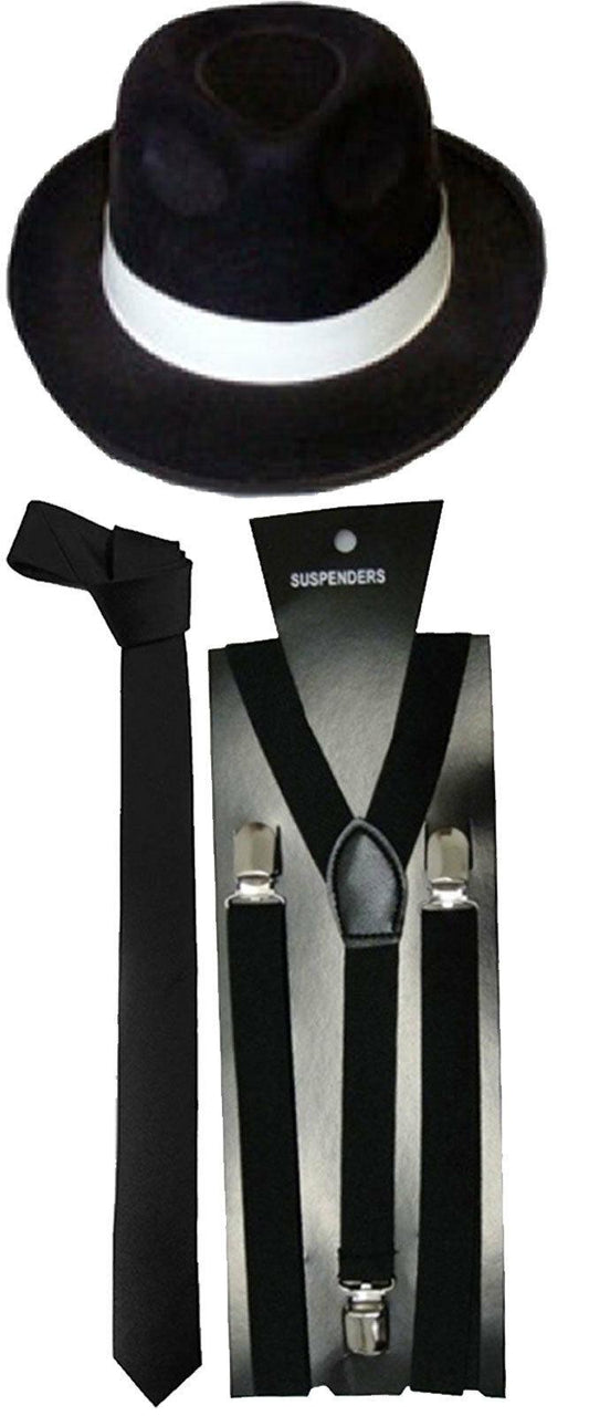 Mens 1920s hat tie braces gangster roaring pimp fancy dress
