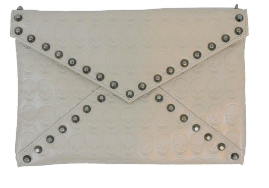 Ladies Girls Skull Embossed Envelop Stylish Clutch Purse with Hematite Studs