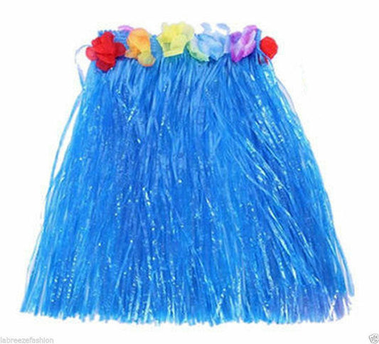 New Ladies Hawaiian Hula Skirt with Flowers 40cm Fancy Dress Costume