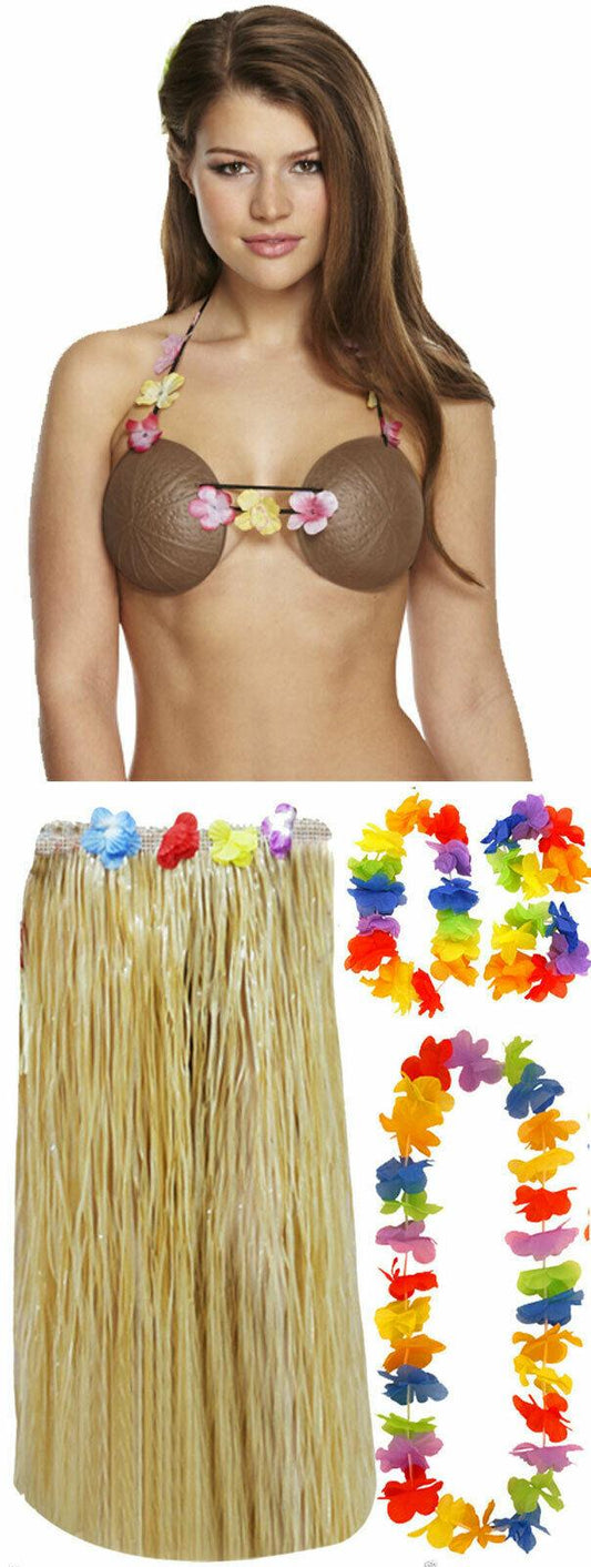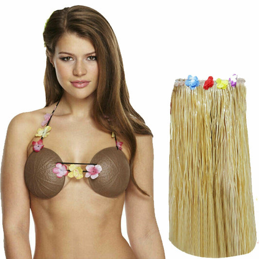 Ladies Girls 80 Cm Hula Grass Skirt Coconut Bra Hawaiian Summer Beach Party Set