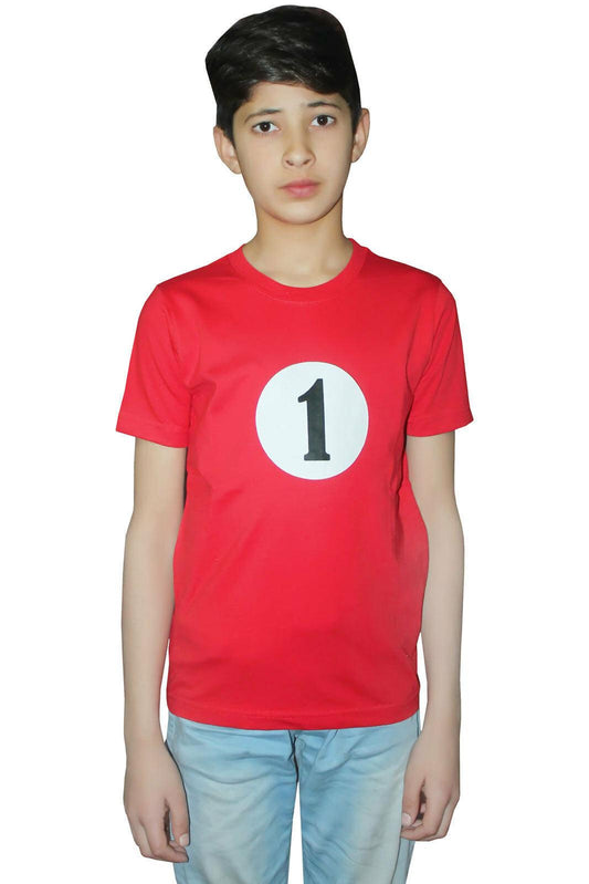 Kids 1 Red Printed T-Shirt Short Sleeves Book Week Fancy Dress Cotton Top