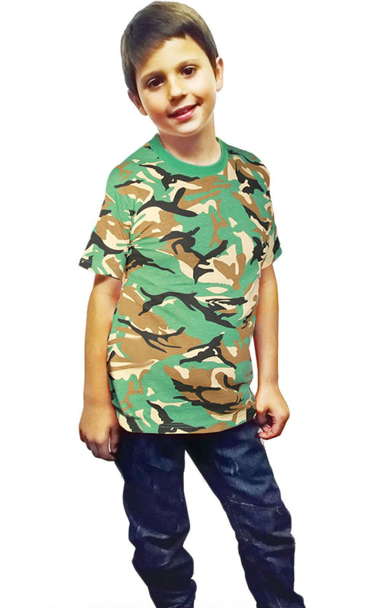 Kids Boy's Green Camouflage Army Print T-Shirt Armed Forces Short Sleeves Top