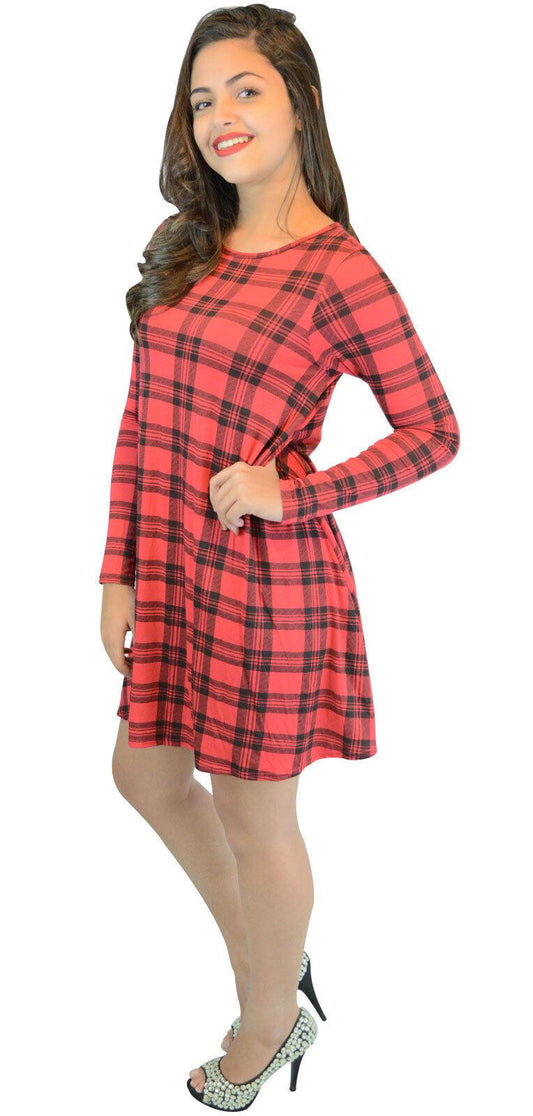 New Ladies Girls Christmas Red Tartan Check Print Flared Casual Swing Dress