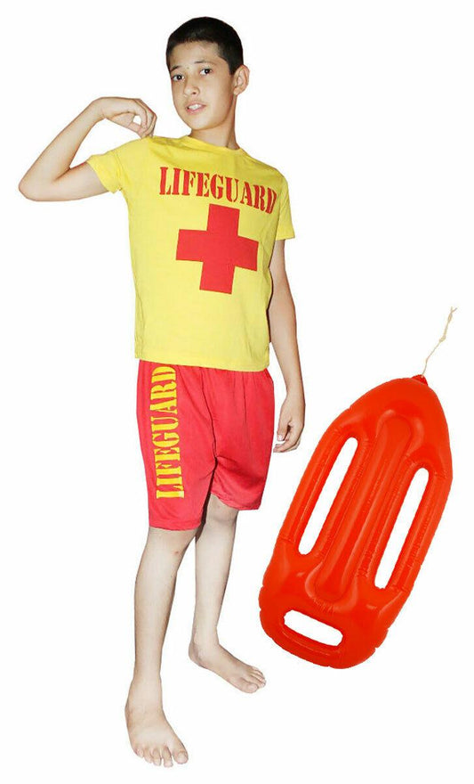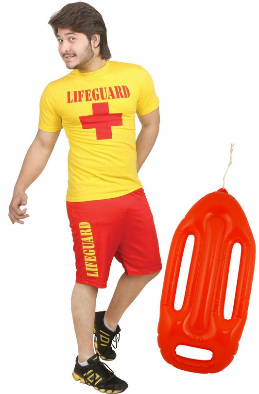 Mens Adults Life Guard T-shirt Short Inflatable Float Beach Rescue Party Set