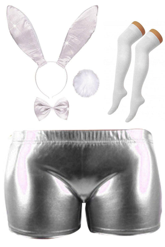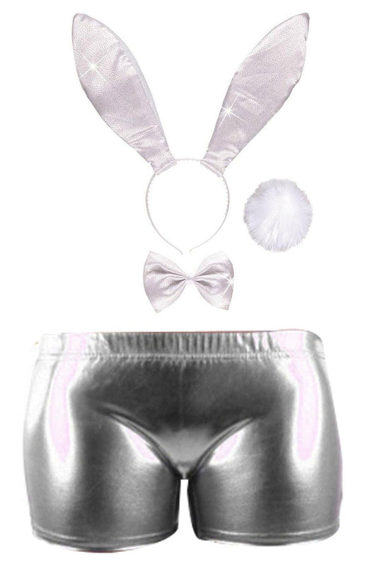 White Glitter Bunny Dress Up Silver Metallic Shorts Hen Stag Party Fancy Dress S