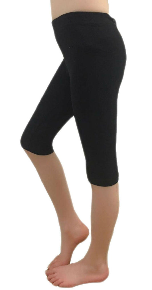 Childrens Girls 3/4 Length Cotton Plain Legging Dancewear Skinny Stretch Pants
