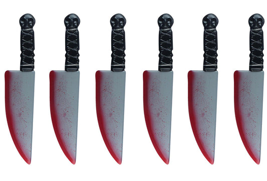 6x Realistic Bloodied Knife Weapon Plastic - 38 cm Halloween Horror Scary Killer Fancy Dress Party Props