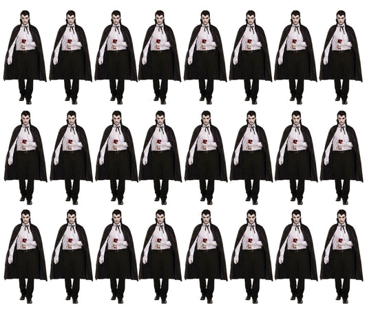 Bundle of 24 Black Dracula Long Capes with Collar - Halloween Unisex Scary Vampire Fancy Dress Costume Accessories