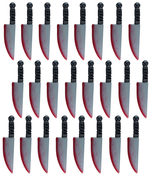 Bundle of 24 Realistic Bloodied Knife Weapon Plastic - 38 cm Halloween Horror Scary Killer Fancy Dress Party Props