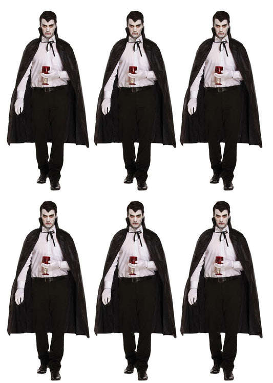 Bundle of 6 Black Dracula Long Capes with Collar - Halloween Unisex Scary Vampire Fancy Dress Costume Accessories