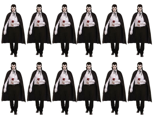 Pack of 12 Black Dracula Long Capes with Collar - Halloween Unisex Scary Vampire Fancy Dress Costume Accessories
