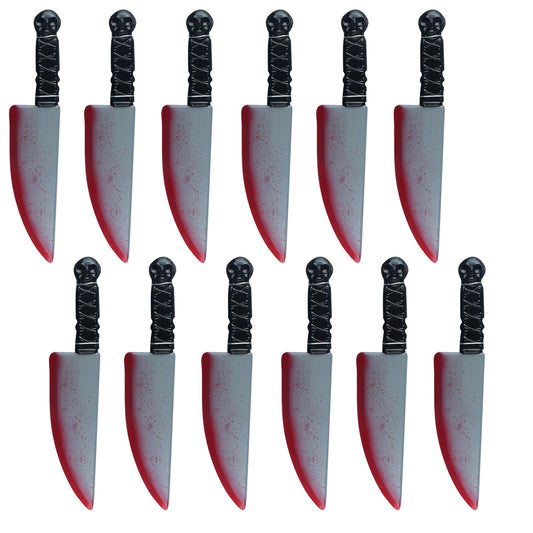 Pack of 12 Realistic Blood Stained Knife Weapon Plastic - 38 cm Halloween Horror Scary Killer Fancy Dress Party Props