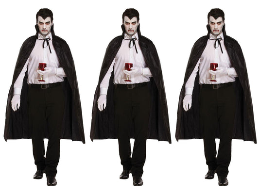 Pack of 3 Black Dracula Long Capes with Collar - Halloween Scary Vampire Fancy Dress Costume Accessories