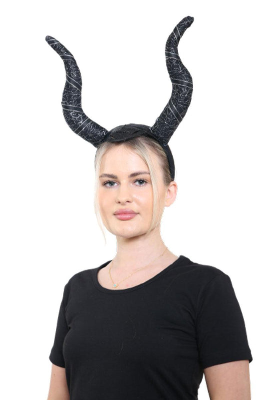 Black Fairytale Evil Witch Horns Headband Ladies Girls Halloween Gothic Horns Cosplay Fancy Dress