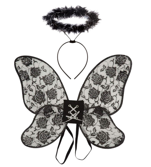 Labreeze Dark Fairy Costume Set | Glitter Rose Wing & Angel Halo